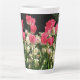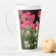 Tall latte mug with pink tulips. A great mug to brighten up your hot drink experience! Leave a comment if you would like this image on a different product! Thanks.