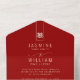 Minimalist Single Lined Red / Faux Gold Foil Tall Rectangle Double Happiness On A Solid Red Colour / Faux Gold Foil Image Background, Chinese Wedding Invite + RSVP Card, All-in-One Invitation.