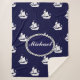 Nautical themed blanket, this one with tall ships, for your home. Personalize it with your initial (monogram) or name.