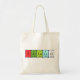 These bags were super cute (I purchased 3). The material is more of a canvas look & feel. The colour of the bag is slightly off white, but the letters look exactly as pictured. I took 3 photos in different lighting. Would recommend! I liked how there was an option to choose the font and colour of the name. The words are legible and the colours are exactly as pictured.