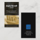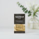 Un comptable tient une feuille de chiffres pendant que la calculatrice l'imprime. Une tâche familière qui se passe partout dans les départements et les entreprises de comptabilité. Le haut et le bas de cette carte sont rendus en noir, laissant la calculatrice exposée dans une teinte ocre. Au-dessus de cet arrière - plan noir, votre nom et vos détails sont enlisés dans un blanc et un gris vif, ce qui les fait se démarquer audacieusement. Un design qui convient particulièrement à tous les acteurs de la comptabilité, de la finance ou de l'administration.