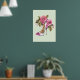 Affiche aquarelle de Modice : Une haute tête élégante, ornée de fleurs roses sur un fond vert minuscule — parfait pour des logements modernes.