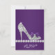 Carton de réponse pour invitation à une fête d'anniversaire des seize ans avec une jolie chaussure à talon haut violet et noir avec un nœud violet. Cette élégante carte de réponse pour invitation à un anniversaire violet convient à l'invitation d'anniversaire de n'importe quelle fille ou femme. Ajoutez vos informations au recto et au verso en cliquant simplement sur le bouton "Personnalisez-le !" pour commencer à ajouter les détails de votre événement, le style de police, la taille et la couleur de la police, ainsi que le libellé. Veuillez noter que tous les modèles d'invitations que vous trouverez sur Zazzle sont des graphiques imprimés sur du papier plat sans véritablement de bijoux, de nœuds, de relief, de gaufrage ou de pièces ajoutées.