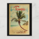 A uniquely retro mid-century modern Tampa Florida art print in vintage travel poster style. It features a curved palm tree on sandy beach with ocean under a blue cloudy sky.