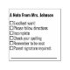 This self-inking stamp has a template. The top line says a note from and has additional text that can be changed to the teacher's name. The remaining lines of display text can be edited to show custom messages for students and/or parents. There are checkboxes to note the appropriate message.