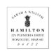 L'estampille en caoutchouc de l'adresse de retour chic tropicale comporte vos prénoms courbés gracieusement sur une illustration de silhouette d'ananas, avec votre nom de famille et les détails de l'adresse de retour en dessous.