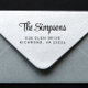 Timbre d'adresse de retour moderne avec votre nom dans un script élégant et votre adresse dans une simple typographie. Gagnez du temps et des efforts en personnalisant sans effort votre adresse de retour. Idéal pour les invitations de mariage, les annonces de fête, la correspondance quotidienne et les mailings d'affaires.