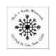 Un timbre d'adresse auto-encastrable avec l'illustration d'un flocon de neige au centre.