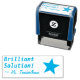 Cette conception de timbres en caoutchouc positif comprend le message de rétroaction motivationnelle "Solution brillante!" et un nom d'éducateur personnalisé. Il est également décoré en étoile. Il pourrait être utilisé par un enseignant, un éducateur ou un tuteur pour marquer les affectations, pour indiquer qu'un étudiant a bien fait.