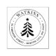 Un arbre de Noël moderne au centre avec nom circulaire et adresse timbre auto-encastré.