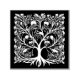 Timbre auto-encastré dans un arbre de vie stylisé, floral, en blanc sur un arrière - plan solide