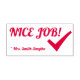 Ce design inspirant d'estampille en caoutchouc comprend le message de rétroaction de motivation "NICE JOB!" et le nom d'un tuteur personnalisé. Il dispose également d'une icône de coche décorative. Il pourrait être utilisé par un enseignant, un éducateur ou un tuteur pour marquer les affectations, pour indiquer qu'un élève a bien fait.
