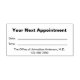 Ce timbre indique "Votre prochaine nomination" en haut. Il y a aussi des lignes pour la date et l'heure du rendez-vous. Il y a aussi du texte d'affichage que vous pouvez modifier pour créer un message personnalisé si vous le souhaitez. Le bas a le texte d'affichage que vous pouvez modifier pour le nom du médecin (ou le nom de l'exercice) et le numéro de téléphone. Tout le texte peut être modifié ou supprimé.