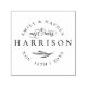Créez votre propre timbre de date mariage chic personnalisé Mr & Mrs marié couple, parfait pour vos invitations de mariage, enregistrer les dates ou tout autre courrier lié au mariage. Ce design présente vos prénoms et votre date de mariage en forme ronde avec votre nom en lettres classiques traditionnelles. Dans la conception, au-dessus du nom de famille, il dit "M. & Mme" dans un script chic et élégant. Cliquez sur le bouton "personnaliser" pour customiser votre design.