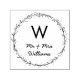 Timbre en caoutchouc monogrammé avec votre nom initial et votre nouveau nom partagé dans une simple couronne de feuilles et de baies.