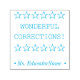 Ce design amusant de timbres en caoutchouc comprend le message inspirant "MAGNIFIQUES CORRECTIONS !" et le nom d'un enseignant personnalisé. Il est également décoré en étoile. Il pourrait être utilisé par un enseignant, un éducateur, un instructeur ou un tuteur lorsqu'il s'agit de marquer les affectations, pour indiquer qu'un élève a bien fait.