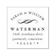 Élégant tampon d'adresse de retour comporte vos prénoms courbés gracieusement sur une petite illustration fleurie, avec votre nom de famille et les détails d'adresse de retour sous le bloc classique et en italique.