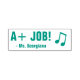 Ce design inspirant de timbres en caoutchouc comporte le message encourageant "A+ JOB!" et un nom d'éducateur personnalisé. Il comporte également une huitième note décorative avec poutres apparentes. Il pourrait être utilisé par un enseignant, un éducateur ou un tuteur pour marquer les affectations, pour reconnaître que l'étudiant a fait un excellent travail.