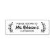 Tampon en caoutchouc personnalisé avec une étiquette de plaque de livre pour enseignant et une bordure de branche rustique. Le texte indique "Veuillez retourner à" personnalisé avec le nom de l'enseignant pour un étiquetage facile de vos livres de classe ou d'autres fournitures. Utilisez les outils de conception pour personnaliser davantage votre propre conception de tampon unique.