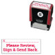 Ce cachet en gras comporte le message "Veuillez consulter, signer et renvoyer", en plus d'une ligne où une signature ou des initiales peuvent être écrites ci-dessus. Il pourrait être utilisé par un enseignant ou un professionnel de l'administration pour demander que quelqu'un examine et reconnaisse le contenu d'un document ou d'autres documents.