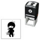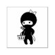 Jolie fille ninja de dessin animé habillée en noir sauf pour un petit nœud sur le dessus de son masque de tête. Un sabre japonais traditionnel katana peut être vu attaché dans son dos. La fille tient un panier de courses.