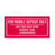 "For mobile deposit only" self-inking stamp with red ink for any business, company, corporation, or home office. Bold design reading "friendly reminder, this account is overdue, your prompt attention is requested", ideal for stamping documents with your own color choice.