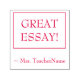Cette conception motivante de timbres en caoutchouc comprend le message de rétroaction motivant "GRANDE ESSAI!" et un nom d'enseignant personnalisé. Il pourrait être utilisé par un enseignant, un éducateur ou un tuteur pour évaluer le travail des étudiants, pour indiquer qu'un étudiant a fait un travail exceptionnel.