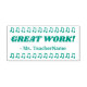 Ce design inspirant d'estampille en caoutchouc comprend le message inspirant "GRAND TRAVAIL !" et le nom d'un enseignant, d'un éducateur ou d'un tuteur customisé. Il présente également une note musicale décorative. Il pourrait être utilisé par un enseignant, un éducateur, un instructeur ou un tuteur pour marquer les affectations, pour reconnaître que l'élève a bien fait.