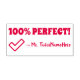 Ce design de timbre en caoutchouc positif comporte le message de louange "100% PARFAIT !" et le nom d'un enseignant ou d'un éducateur personnalisé. Il dispose également d'une icône de coche décorative. Il pourrait être utilisé par un enseignant, un éducateur, un instructeur ou un tuteur pour évaluer le travail d'un étudiant, afin de reconnaître qu'un étudiant a fait un travail exceptionnel.