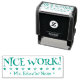 Ce design de timbre en caoutchouc positif comporte le message de retour encourageant "NICE WORK!" et un nom de tuteur personnalisé. Il présente également des formes étoiles décoratives. Il pourrait être utilisé par un enseignant, un éducateur ou un tuteur de l'école pour marquer les affectations, pour reconnaître que l'élève a bien fait.