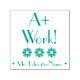 Ce design amusant de timbres en caoutchouc comprend le message inspirant "A+ Work!" et le nom d'un éducateur personnalisé. Il présente également des formes florales décoratives. Il pourrait être utilisé par un enseignant ou un éducateur pour marquer les affectations, pour reconnaître qu'un étudiant a bien fait.
