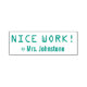 Ce design motivant de timbres en caoutchouc comprend le message encourageant "BEAU TRAVAIL !" et le nom d'un enseignant, d'un éducateur ou d'un tuteur customisé. Il pourrait être utilisé par un enseignant, un éducateur ou un tuteur pour évaluer le travail des étudiants, pour indiquer qu'un étudiant a fait un travail exceptionnel.