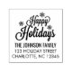 Apportez une touche saisonnière spéciale à tous vos cadeaux, enveloppes, faveurs et forfaits avec ce timbre en caoutchouc personnalisé, avec la mention "Joyeuses fêtes" avec illustration de flocons de neige. Customisez avec votre nom de famille et votre adresse.