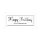 Happy Birthday est un script élégant sur ce timbre. Une deuxième ligne de texte est pour à partir de votre nom. (Montré : de Samantha) Tout le texte peut être modifié.