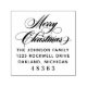 L'estampille auto-encastrée de vacances présente un élégant accueil "Joyeux Noël" dans un script de calligraphie florissant. Personnalisez le texte personnalisé moderne avec votre nom / nom de famille et adresse de retour.