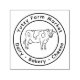 Line drawing of farm animal, Holstein Cow, within double circle border. Your own business name and tagline or location encircles the center picture with customizable word "Fresh" below Cow.