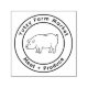 Line drawing of a little pig with double circle border. Your own business name and tagline or location