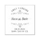 Conçu sur mesure, le timbre pour mariage Save the Date présente des ornements élégants et de style classique avec des noms de couple personnalisés, une date de mariage et un emplacement.