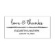 Ce magnifique timbre en caoutchouc avec de la vigne avec un coeur soulignant les mots "amour & merci" dans le style de police de calligraphie moderne et les détails dans le style de police sans-serif moderne. Idéal pour mariage, baby shower, fête d'anniversaire, douche nuptiale et toutes occasions spéciales.