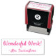 Ce design inspirant d'estampille en caoutchouc comprend le message inspirant "Merveilleux travail!" et le nom d'un éducateur customisé. Il pourrait être utilisé par un enseignant, un éducateur ou un tuteur pour marquer les affectations, pour indiquer que l'étudiant a fait un excellent travail.