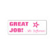 Ce design amusant de timbres en caoutchouc comprend le message "BEAU TRAVAIL !" et le nom d'un enseignant customisé. Il est également décoré en étoile. Il pourrait être utilisé par un enseignant ou un éducateur pour marquer les affectations, pour reconnaître que l'étudiant a bien fait.