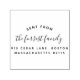 Le nom de famille de retour moderne et élégant adresse auto-encastré tampon en caoutchouc. Ce design comprend votre nom de famille en calligraphie manuscrite et vos coordonnées en simple police sans serif. En haut de la conception, il y a "envoyé de" dans la même police que les détails de l'adresse. Parfait pour toutes les occasions. Ajoutez une touche personnelle à votre courrier avec ce design ! N'hésitez pas à nous contacter si vous avez des questions !