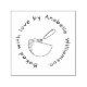 Timbre auto-encastré personnalisé 'Baked With Love' avec une charmante illustration dessinée à la main d'un bol de mélange et d'un beater d'oeuf. Parfait pour ajouter une touche chaleureuse et faite maison aux produits de boulangerie, emballages et étiquettes cadeaux ! Le texte personnalisé avec votre nom dans la typographie manuscrite tourne autour de la création d'un cadre rond.