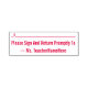 Tampon Auto-encreur Plaque "S'Il Vous Plaît Signer Et Retourner Rapide