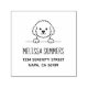 Simple cartoon illustration of a happy poodle mix dog peeking from behind a divider. Only its head and front paws are visible. Customize with your own address.