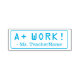 Ce design de timbres en caoutchouc encourageant comporte le message de louange "A+ TRAVAILLE !" et le nom d'un enseignant ou d'un éducateur customisé. Il pourrait être utilisé par un enseignant ou un éducateur pour marquer les affectations, pour reconnaître que l'étudiant a fait un excellent travail.