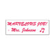 Ce design de timbres en caoutchouc encourageant comporte le message encourageant "MARVELOUS JOB!" et le nom d'un enseignant personnalisé. Il présente également une note musicale décorative. Il pourrait être utilisé par un enseignant ou un éducateur pour évaluer le travail des étudiants, pour reconnaître qu'un étudiant a fait un travail exceptionnel.