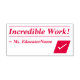 Ce design de timbres en caoutchouc encourageant comporte le message inspirant "Incroyable travail!" et le nom d'un tuteur personnalisé. Il dispose également d'une marque décorative. Il pourrait être utilisé par un enseignant, un éducateur, un instructeur ou un tuteur pour évaluer le travail d'un étudiant, afin de reconnaître qu'un étudiant a fait un travail exceptionnel.