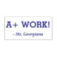 Ce design amusant de timbres en caoutchouc comprend le message motivant "A+ TRAVAIL !" et le nom d'un enseignant, d'un éducateur ou d'un tuteur personnalisé. Il pourrait être utilisé par un enseignant ou un éducateur pour marquer les affectations, pour reconnaître qu'un étudiant a bien fait.