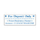 Cette conception respectable d'estampille en caoutchouc comprend le message "Pour dépôt seulement", en plus d'un nom et un numéro de compte personnalisés. Il pourrait être utilisé par un propriétaire de petite entreprise, un exploitant de petite entreprise ou un commis aux finances pour ajouter rapidement un endossement restrictif à un chèque.